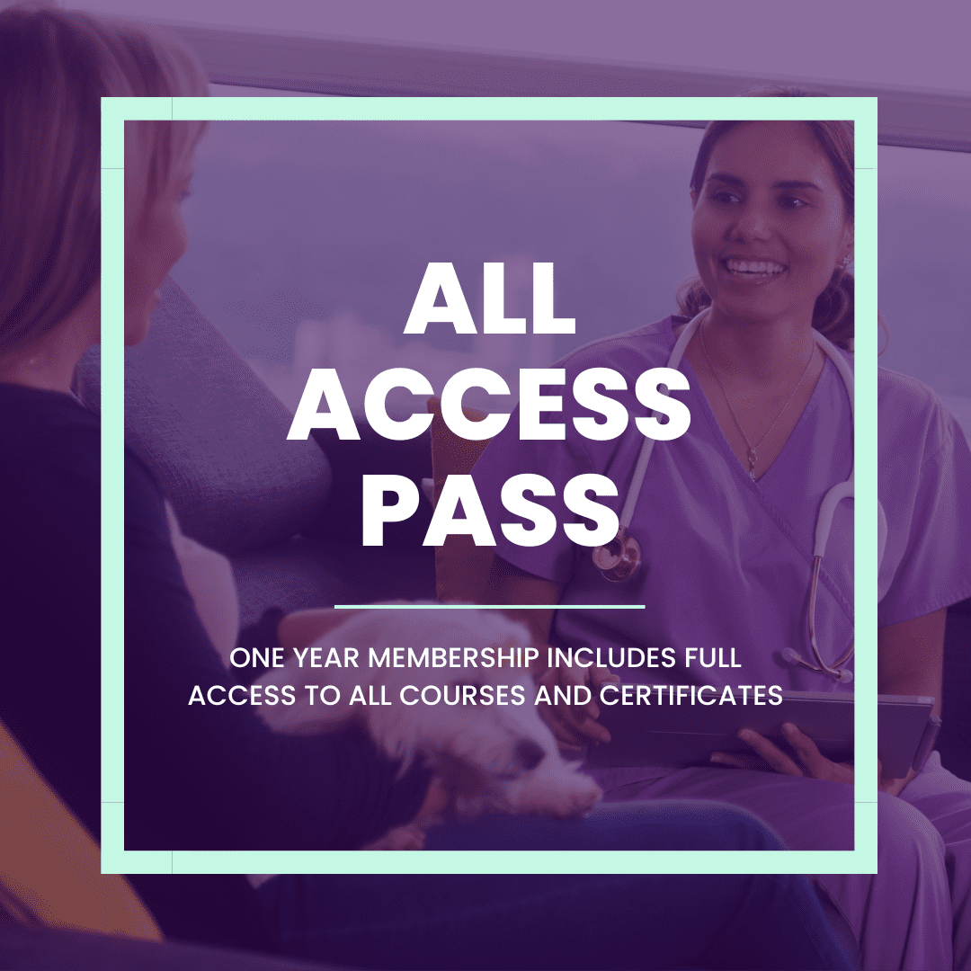 The All Access Pass is a one year membership that includes unlimited on-demand access to all courses and certificates on Obi Veterinary Education, including over 42 hours of RACE-approved content in: